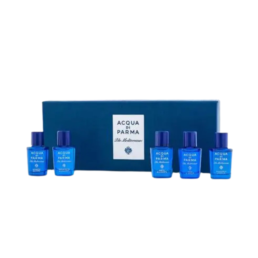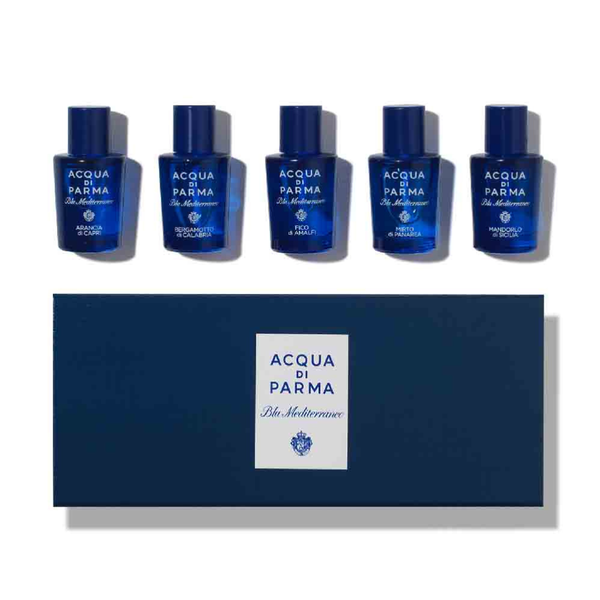 The Acqua Di Parma Blu Mediterraneo 5-Piece Miniature Fragrance Set offers a luxurious introduction to the brand's iconic Mediterranean-inspired scents. This set features five mini fragrances from the Blu Mediterraneo collection, each capturing the essence of the Italian coast with refreshing, vibrant, and sophisticated notes. The compact 0.16 oz vials make it perfect for travel or discovering your favorite fragrance.