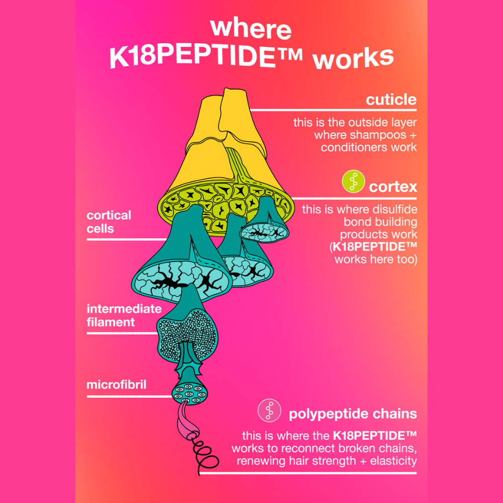 Works on all hair types – because K18PEPTIDE™ works on a molecular level (where all hair is the same), this product is effective on all hair types.