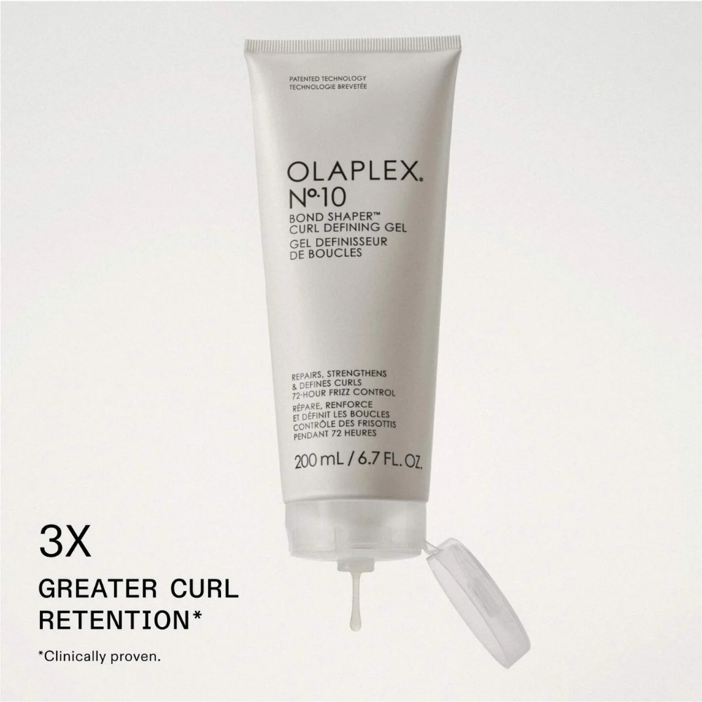 Olaplex No.10 Bond Shaper is a curl-enhancing styling gel that strengthens, defines and smooths curls without crunch. Formulated with OLAPLEX Bond Building Technology™, it repairs disulfide bonds at the molecular level to support curl structure while delivering medium hold and optimal slip for easy styling.